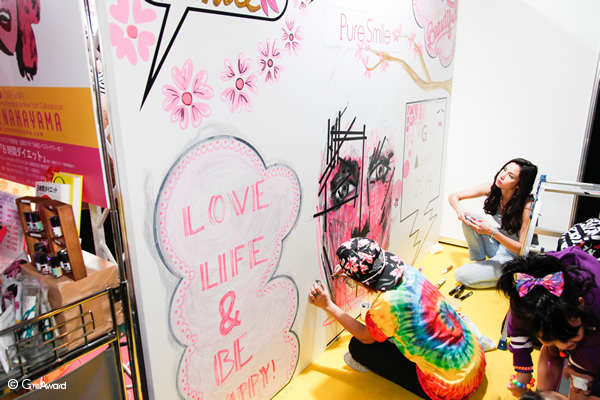 今回はモデルの水沢アリーさんもブースに遊びにきてくれて美容やファッションについて話してくれました!応援にかけつけたニューハーフのお姉様達とイケメン達がブースでお迎え♡ド派手な姿は会場内でも目を引き、思わず記念撮影をするお客様もいました♪今回も大盛況なPureSmileから、ステージに登場したデヴィ夫人のコラボパックが8月発売予定とか♡