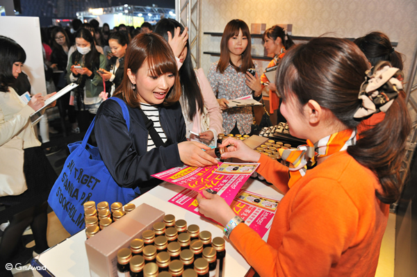 ミラクルシミュレーションのアプリをダウンロードした方には、プラセンタ配合美容ドリンクをプレゼント♪また、隣では美肌診断のコーナも出現。美に対する意識を高められるブースとあって、興味のある女の子たちがたくさん集まっていました♡ また、トークショーには山本優希さんが訪れ、美肌のコツなどを話していただきました。みなさんモデルさんの肌のお手入れなど興味津々で聞いていました♪