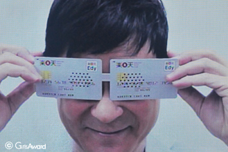 川平慈英さんがビジョンからプレゼントの発表! 会場で配っていた楽天カードメガネをみなさんが着用し、会場は楽天カードウーマンで埋め尽くされました!